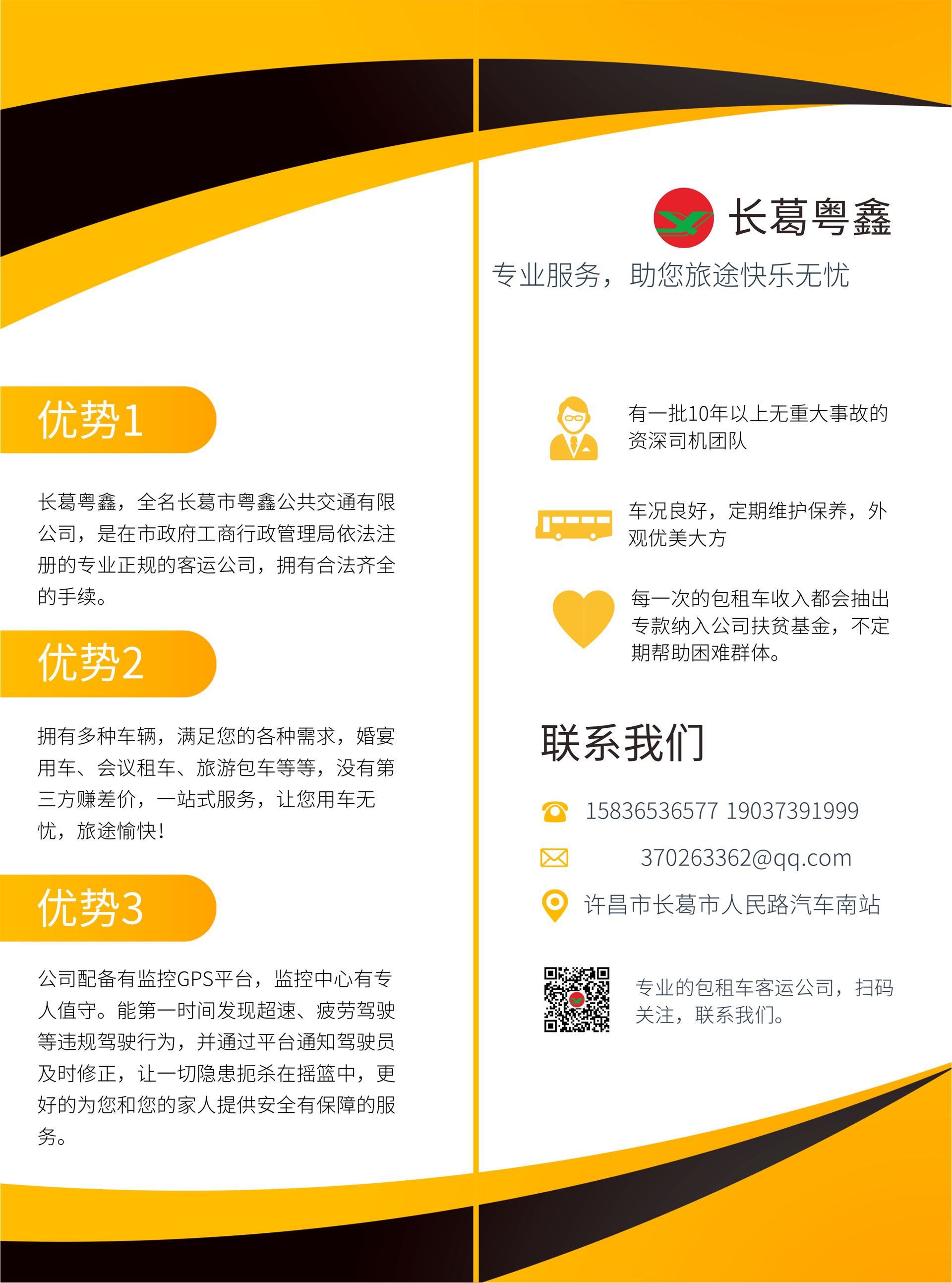长葛包租车就找长葛市粤鑫公共交通有限公司,公司承接各种旅游包车、会议租车、婚宴用车等包租车业务,公司秉承“诚信为本,服务至上”的企业文化理念,为广大群众的出行提供服务。